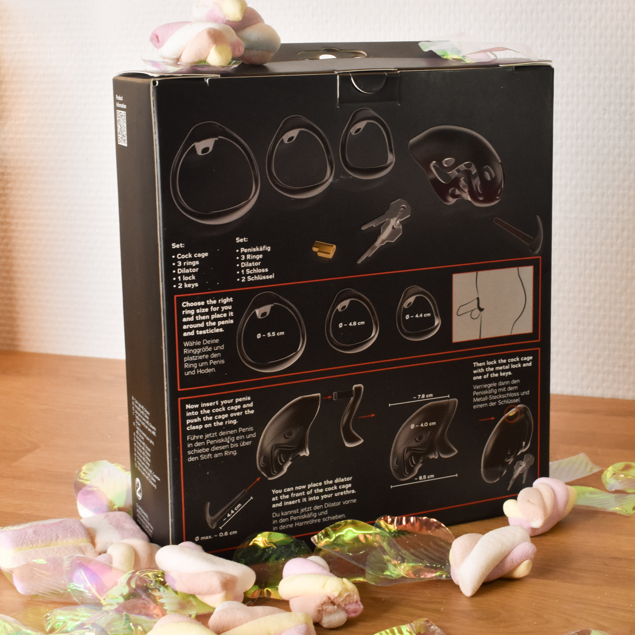 | Dimensions | Cage à pénis : 7,8 cm de long, Ø 4 cm |